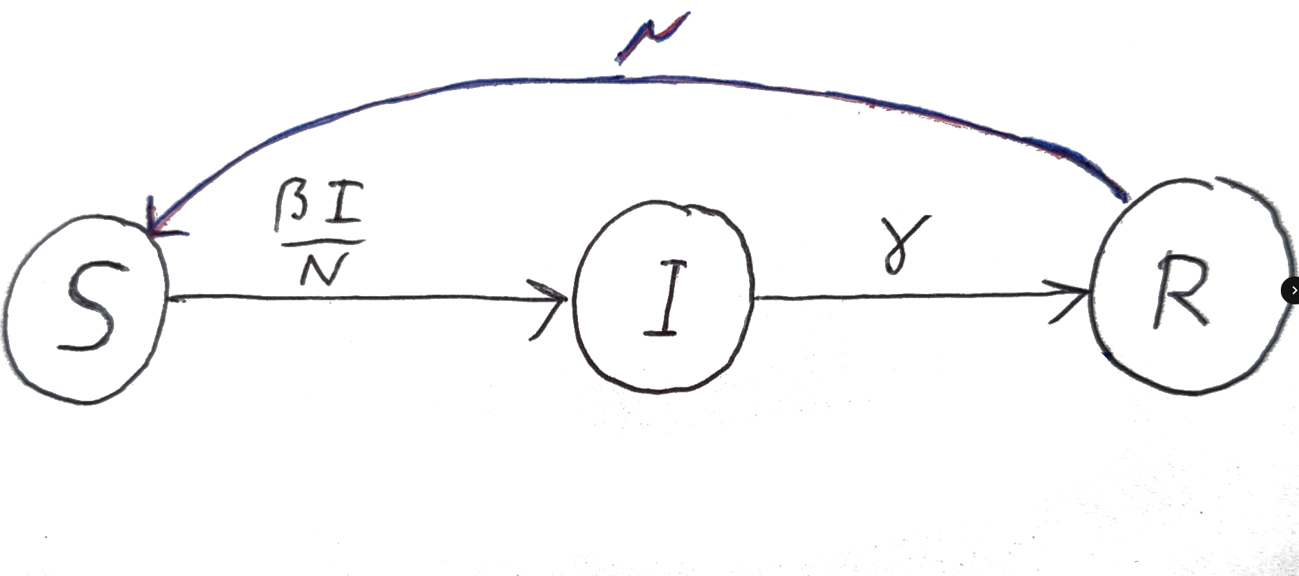 Figure 6.7: Graphical representation of the SIR model with loss of immunity.