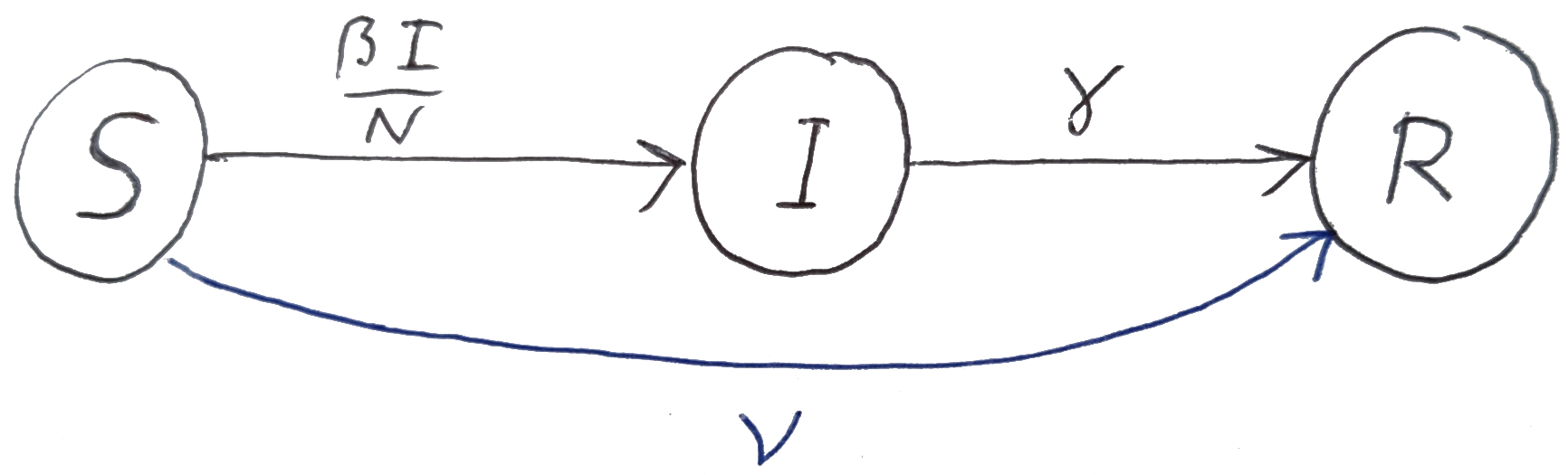 Figure 6.6: Graphical representation of the SIR model with vaccination.