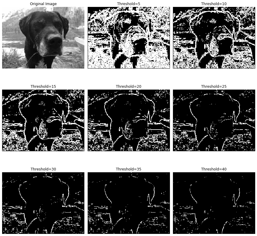 plt.show()Figure 6.8 shows the result of different threshold values applied to the simplest numerical gradient computations. The image was taken by the author.