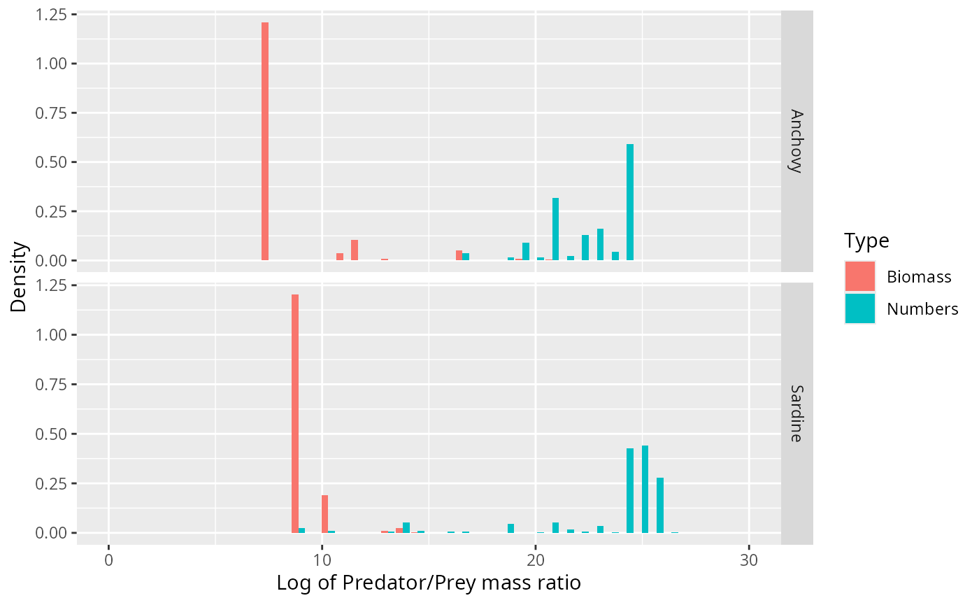 So the number distribution and the biomass distribution would be consistent with each other if the actual for sardine was just a little bit smaller than the smallest observed one. This is not unreasonable.